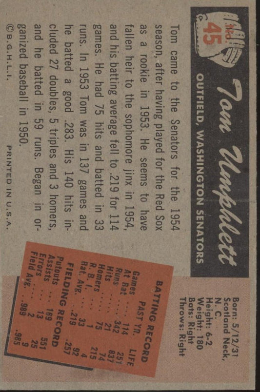 Tom Umphlett 1955 Bowman #45 Washington Senators VG