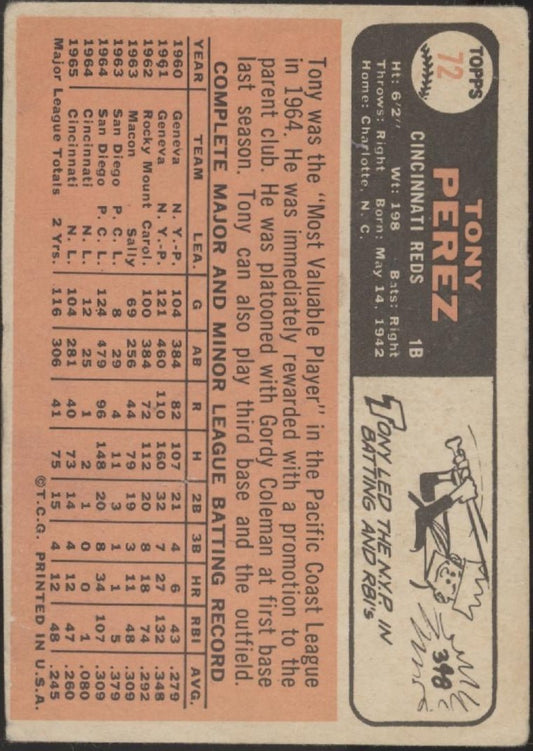 Tony Perez 1966 Topps #72 Cincinnati Reds GD