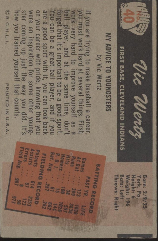 Vic Wertz 1955 Bowman #40 Cleveland Indians VG-EX