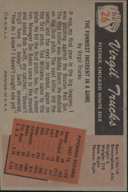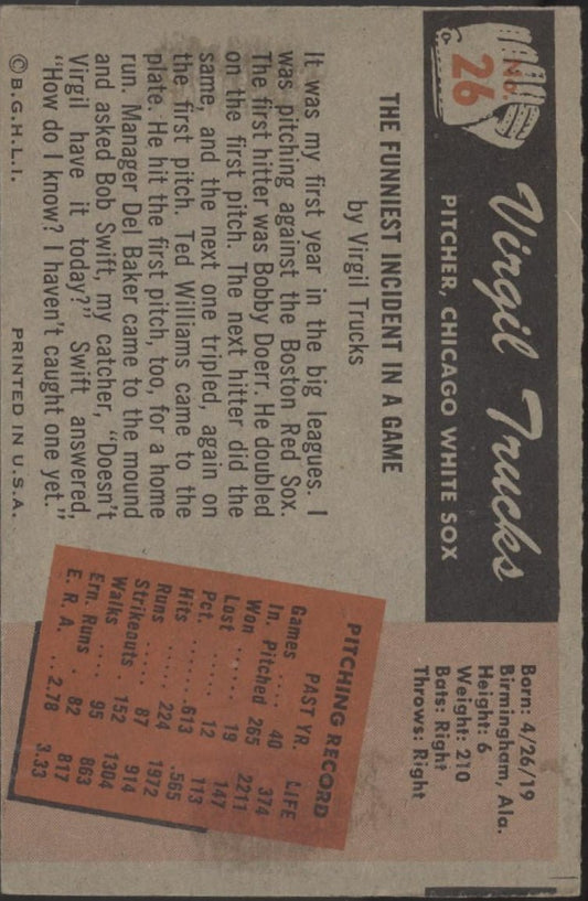 Virgil Trucks 1955 Bowman #26 Chicago White Sox VG