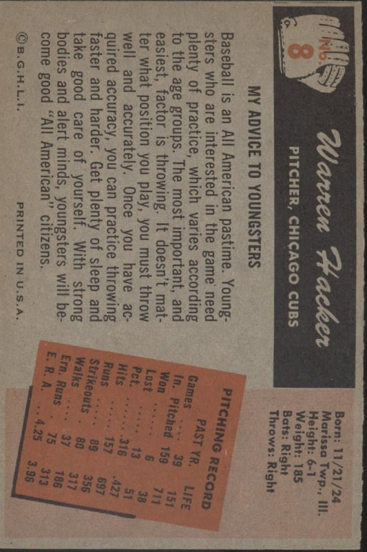 Warren Hacker 1955 Bowman #8 Chicago Cubs EX