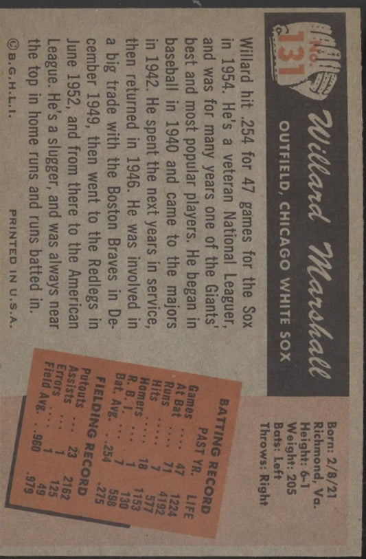 Willard Marshall 1955 Bowman #131 Chicago White Sox VG-EX #1