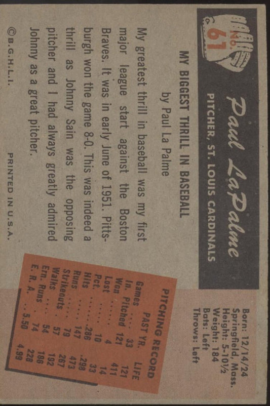 Paul LaPalme 1955 Bowman #61 St. Louis Cardinals VG-EX #2
