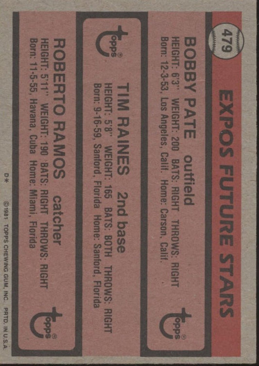 Raines / Ramos / Pate 1981 Topps Expos Future Stars RC #479 #1
