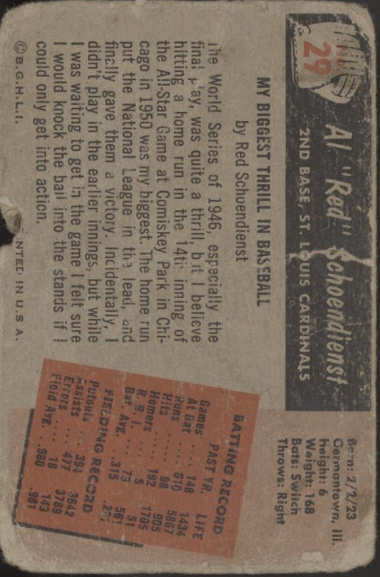 Red Schoendienst 1955 Bowman #29 St. Louis Cardinals PR