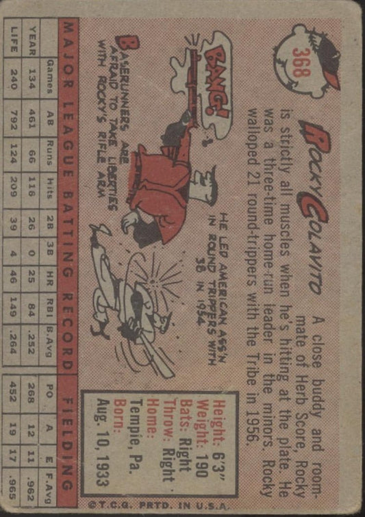 Rocky Colavito 1958 Topps #368 Cleveland Indians GD