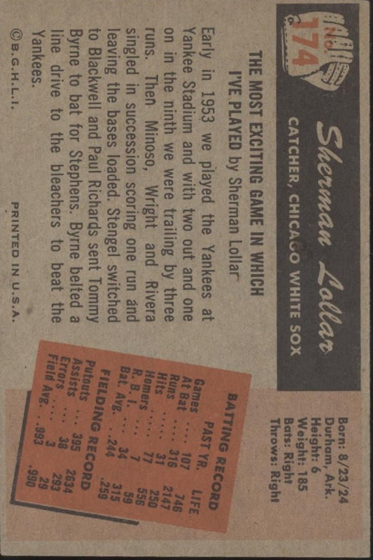 Sherman Lollar 1955 Bowman #174 Chicago White Sox VG-EX