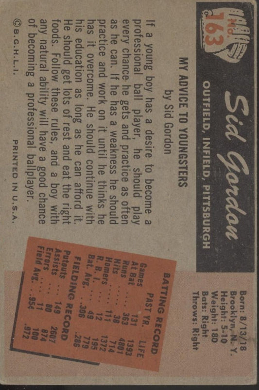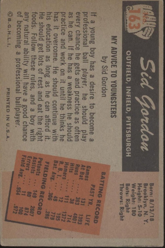 Sid Gordon 1955 Bowman #163 Pittsburgh Pirates VG-EX