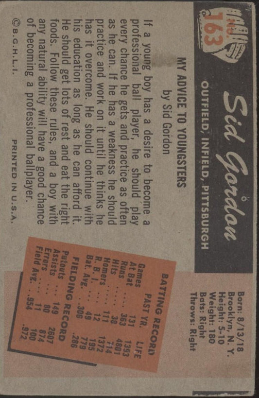 Sid Gordon 1955 Bowman #163 Pittsburgh Pirates VG #3