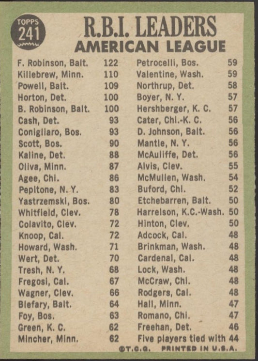 Robinson / Killebrew / Powell 1967 Topps RBI Leaders #241 VG #1