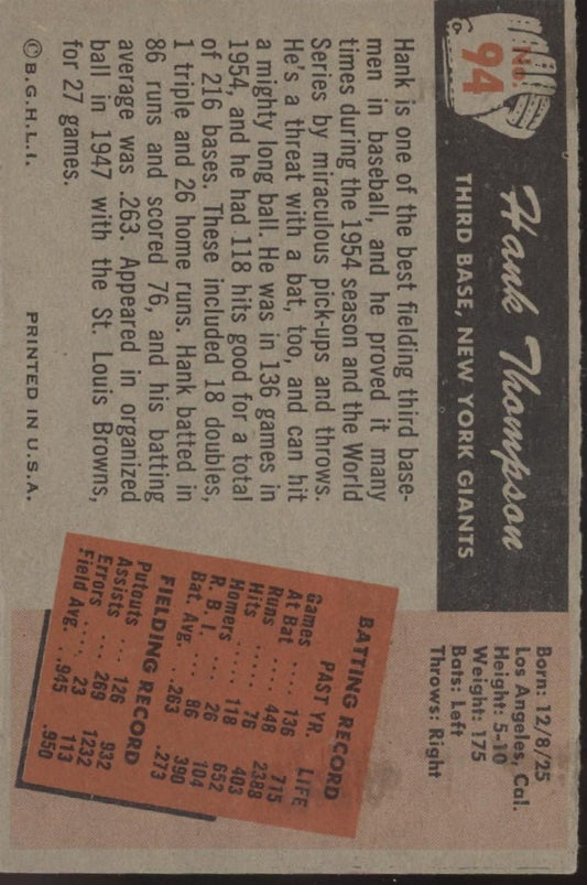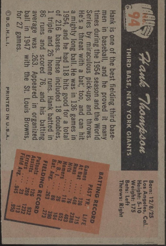 Hank Thompson 1955 Bowman #94 New York Giants EX