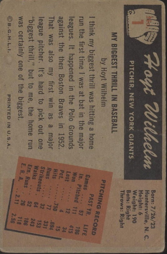 Hoyt Wilhelm 1955 Bowman #1 New York Giants PR