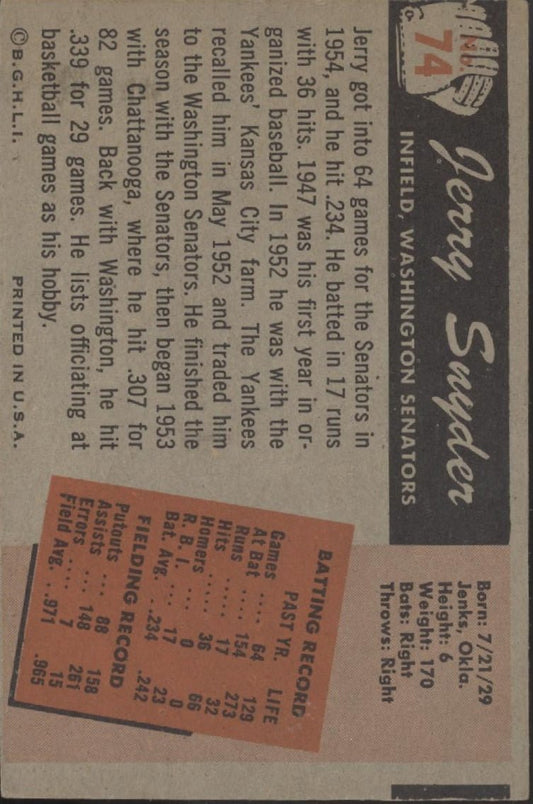 Jerry Snyder 1955 Bowman #74 Washington Senators VG