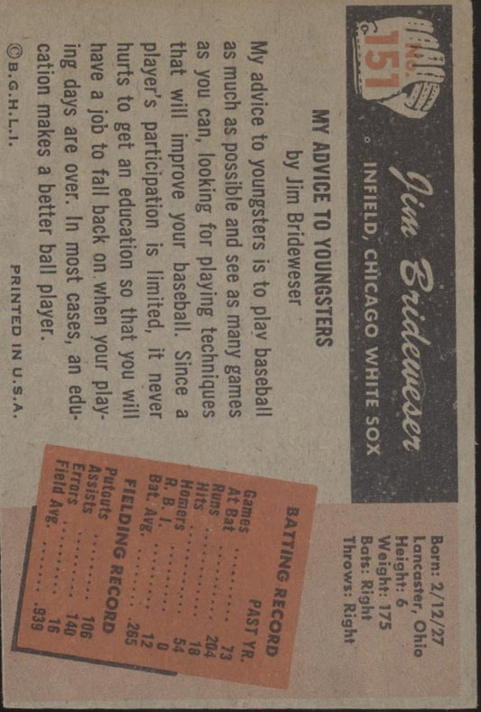 Jim Brideweser 1955 Bowman #151 Chicago White Sox VG-EX #2
