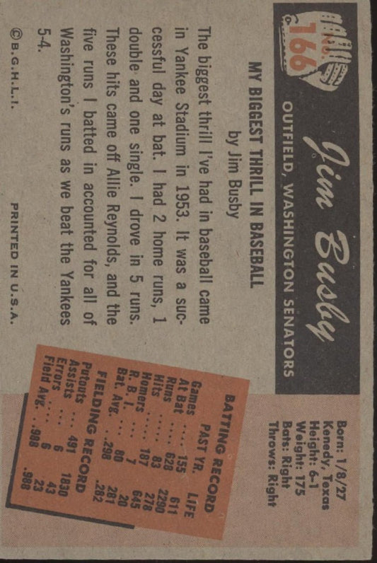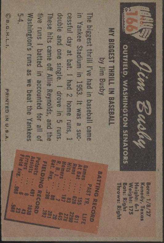 Jim Busby 1955 Bowman #166 Washington Senators VG
