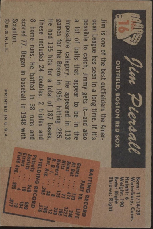 Jim Piersall 1955 Bowman #16 Boston Red Sox VG-EX #2