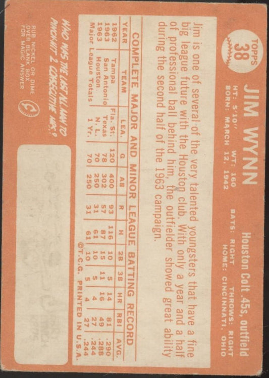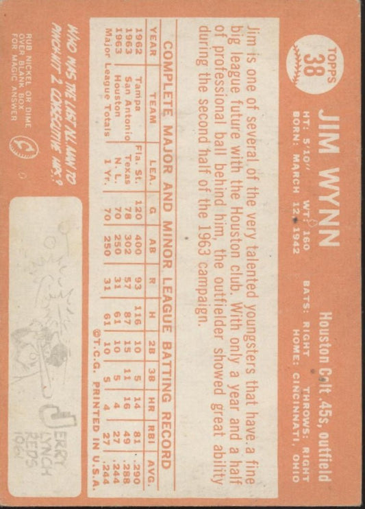 Jim Wynn 1964 Topps RC #38 Houston Colt 45s VG #2