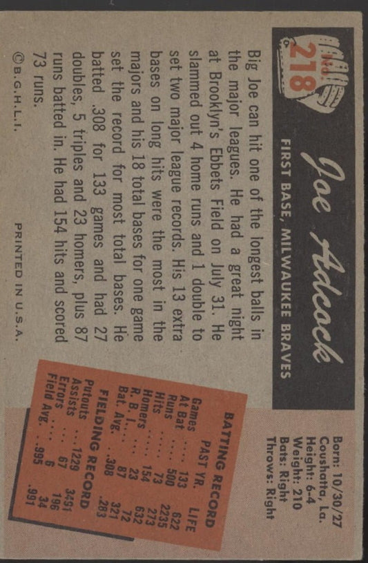 Joe Adcock 1955 Bowman #218 Milwaukee Braves EX