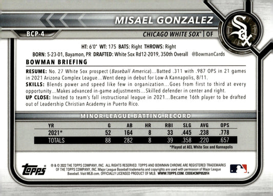 Misael Gonzalez 2022 Bowman Chrome Prospects Mojo Refractor #BCP-4