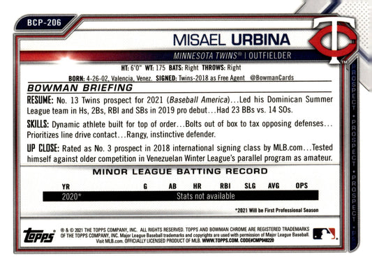 Misael Urbina 2021 Bowman Chrome Prospects Mojo Refractor #BCP-206