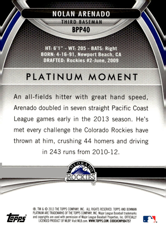 Nolan Arenado 2013 Bowman Platinum Refractor #BPP40