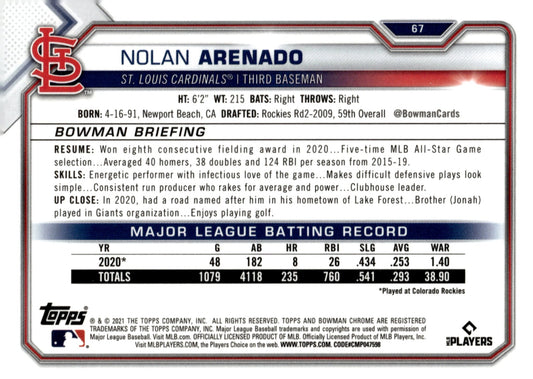 Nolan Arenado 2021 Bowman Chrome Veterans Purple Refractor 068/150 #67