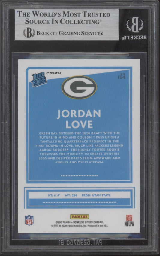 Jordan Love 2020 Panini Donruss Optic Rated Rookie Pink Prizm RC #154 Beckett 9