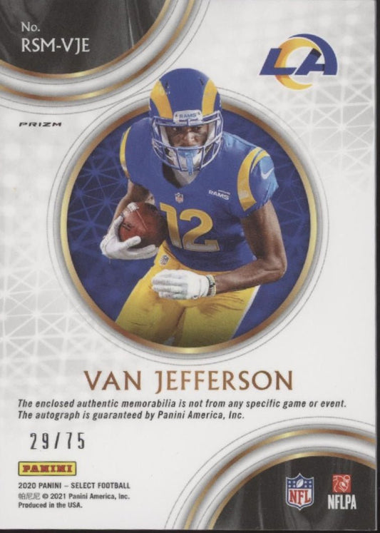 Van Jefferson 2020 Panini Select Blue Prizm Swatch Auto RC 29/75 #RSM-VJE