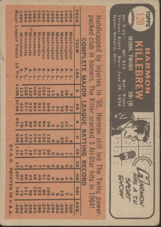 Harmon Killebrew 1966 Topps #120 Minnesota Twins GD