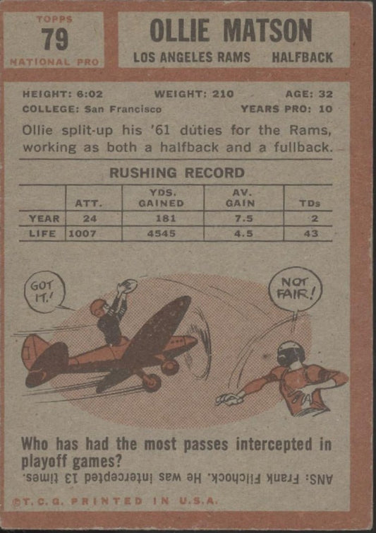Ollie Matson 1962 Topps #79 Los Angeles Rams VG #1