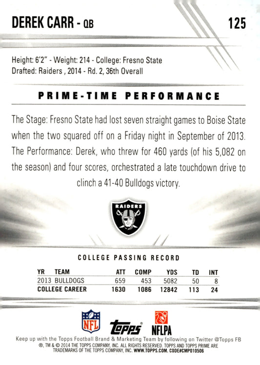 Derek Carr 2014 Topps Prime RC #125