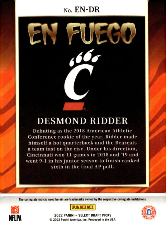 Desmond Ridder 2022 Panini Select Draft Picks En Fuego RC #EN-DR