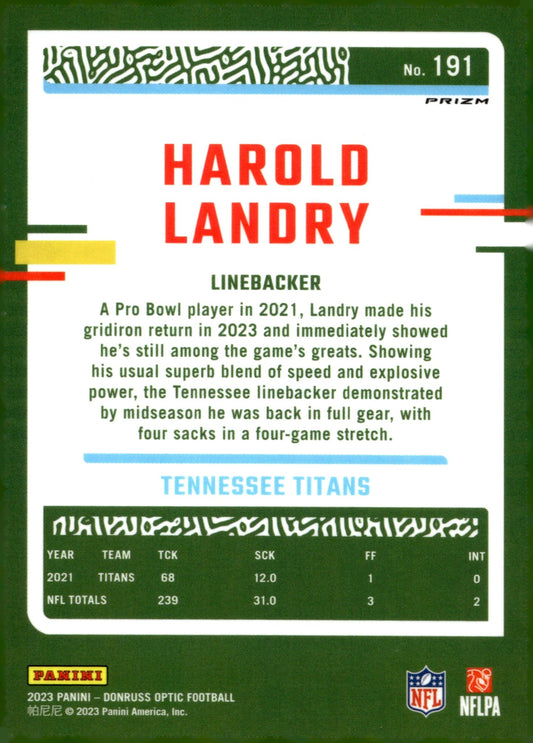 Harold Landry 2023 Panini Donruss Optic Rocket Prizm #191
