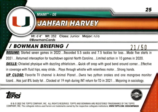 Jahfari Harvey 2023 Bowman Chrome University Gold Refractor 21/50 #25