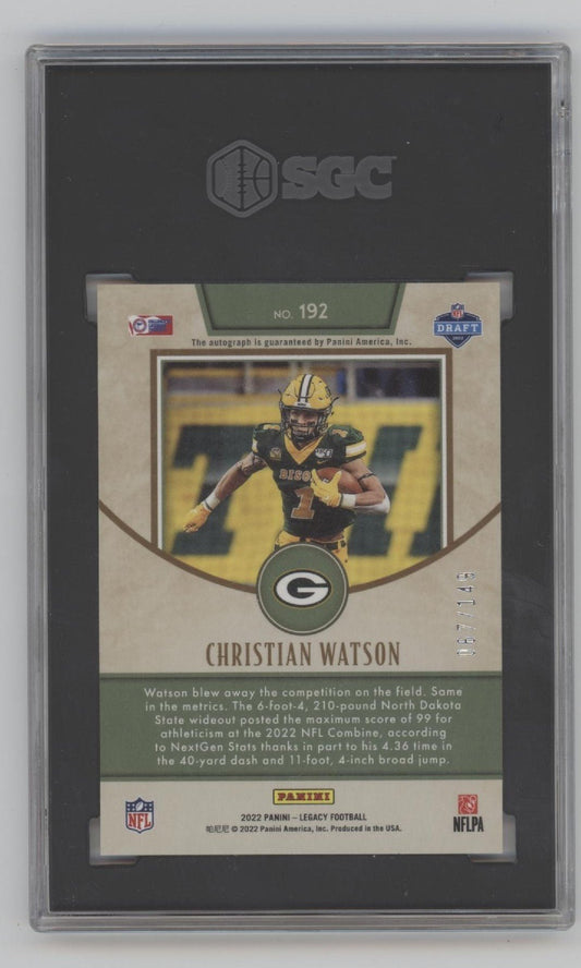 Christian Watson 2022 Panini Legacy Orange Auto RC 67/149 #192 SGC 10 / 9.5