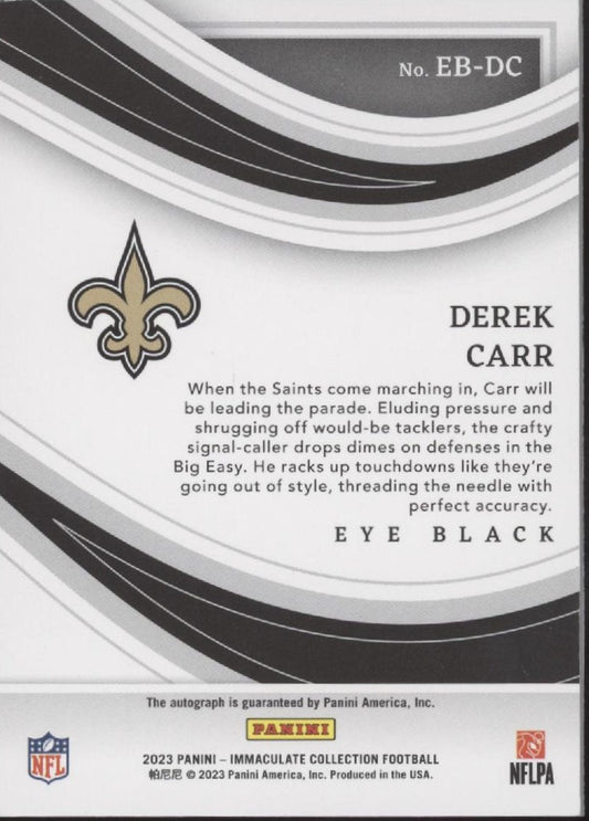 Derek Carr 2023 Panini Immaculate Collection Eye Black Auto 22/49 #EB-DC