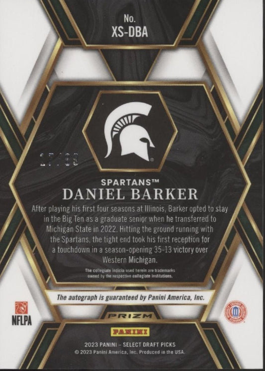 Daniel Barker 2023 Panini Select Draft Picks Purple Lazer Prizm RC Auto 17/89