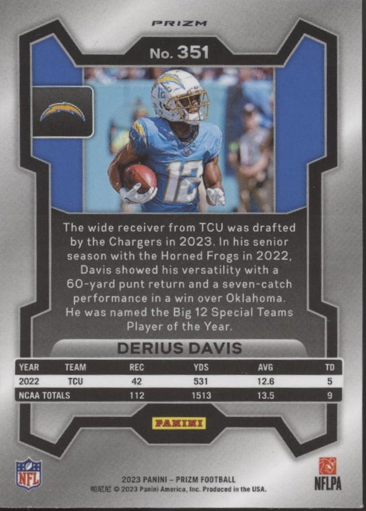 Derius Davis 2023 Panini Prizm Silver Prizm RC #351