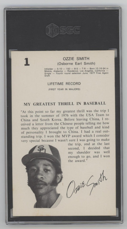 Ozzie Smith 1978 Family Fun Centers Oversized #1 SGC 8.5