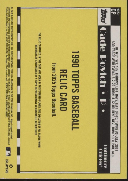 Cade Povich 2025 Topps 35th Anniversary Purple Swatch RC 02/10 #90R2-CP