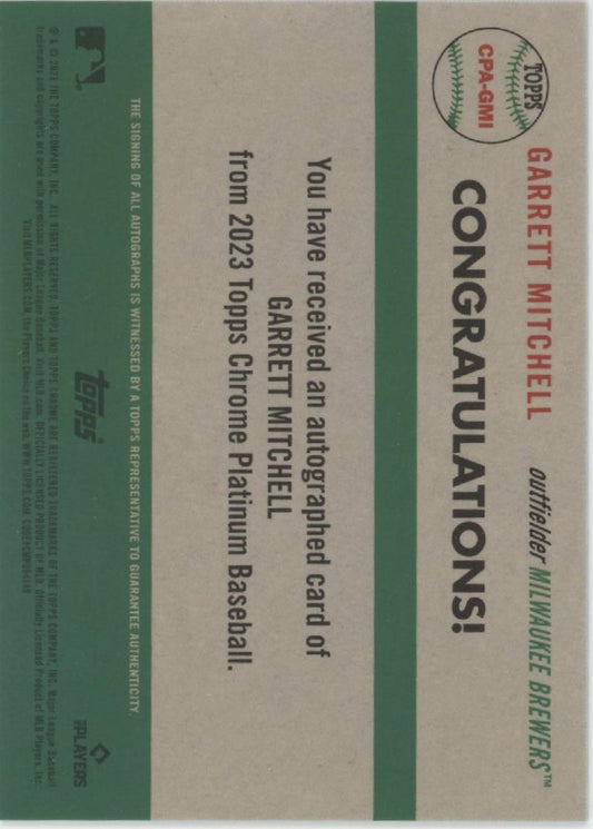 Garrett Mitchell 2023 Topps Chrome Platinum Aqua Refractor RC Auto 134/150