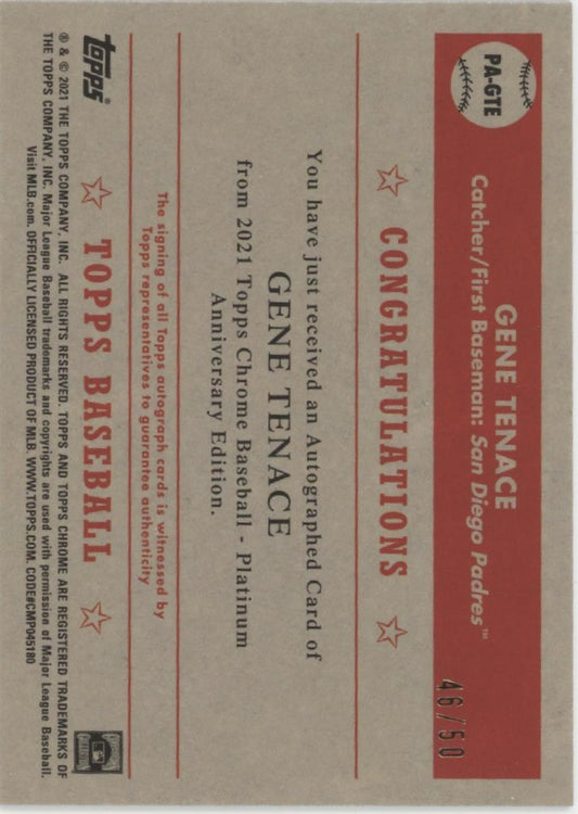 Gene Tenace 2021 Topps Chrome Platinum Gold Refractor Auto 46/50 #PA-GTE