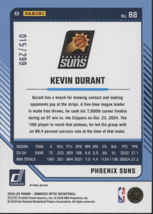 Kevin Durant 2024-25 Panini Donruss Optic Orange Hyper Prizm 015/299 #88