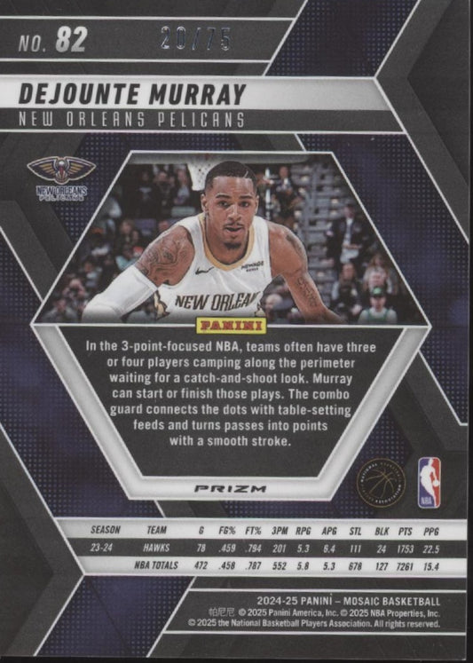 Dejounte Murray 2024-25 Panini Mosaic Blue Fluorescent Prizm 20/75 #82
