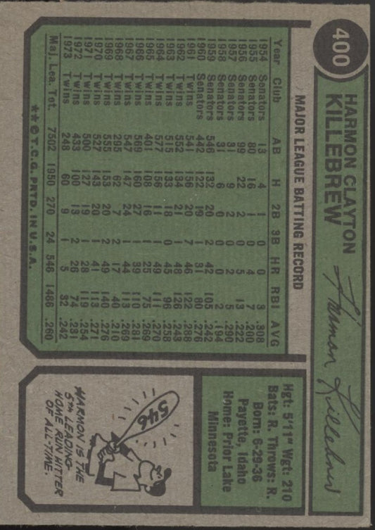 Harmon Killebrew 1974 Topps #400 Minnesota Twins EX