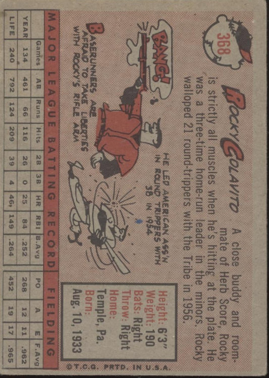 Rocky Colavito 1958 Topps #368 Cleveland Indians VG #3