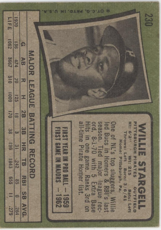 Willie Stargell 1971 Topps #230 Pittsburgh Pirates VG