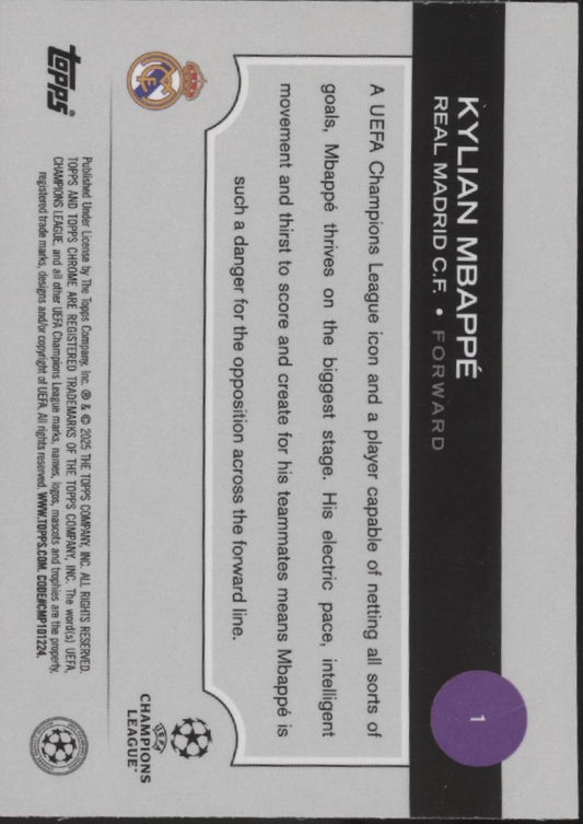 Kylian Mbappe 2025 Topps Chrome UEFA Champions League 078/299 #1