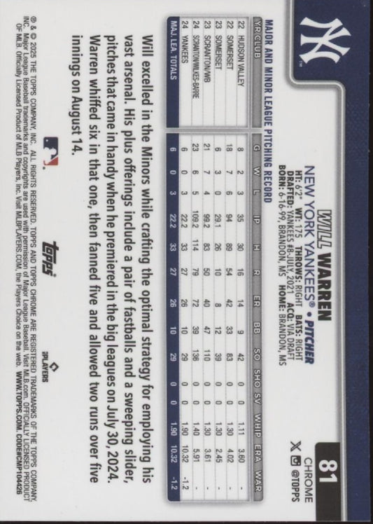 Will Warren 2025 Topps Chrome Green Wave Refractor RC 15/99 #81