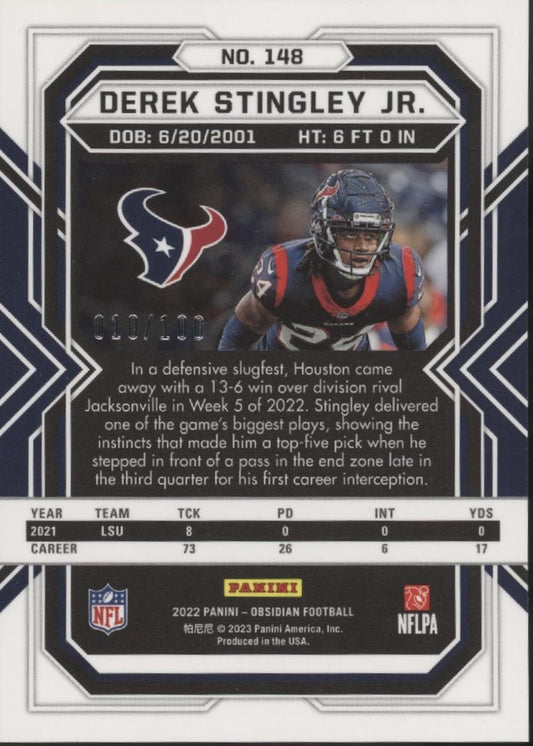 Derek Stingley Jr. 2022 Panini Obsidian Purple Refractor RC 010/100 #148